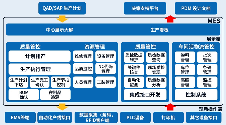 MES系統是一套面向制造企業車間執行層的生產信息化管理系統。MES可以為企業提供包括制造數據管理、計劃排程管理、生產調度管理、庫存管理、質量管理、人力資源管理、工作中心、設備管理、工具工裝管理、采購管理、成本管理、項目看板管理、生產過程控制、底層數據集成分析、上層數據集成分解等管理模塊,為企業打造一個扎實、可靠、全面、可行的制造協同管理平臺。